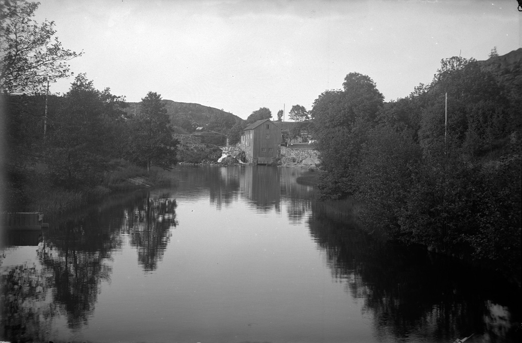 Text till bilden: "Vattenfall vid Fossum kvarn fr. bron till Parken den 2/7 1923".