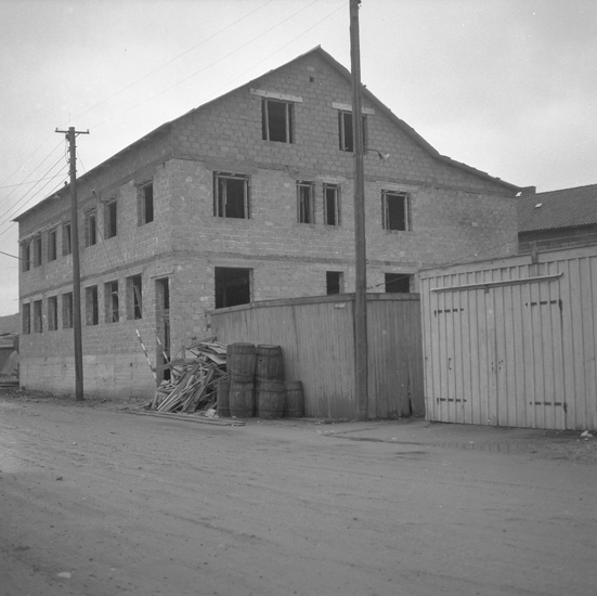Text till bilden: "Lysekil. Exteriör. AB Öhrnbergs nybyggda konservfabrik i N. Hamnen. 1953.12.21"
