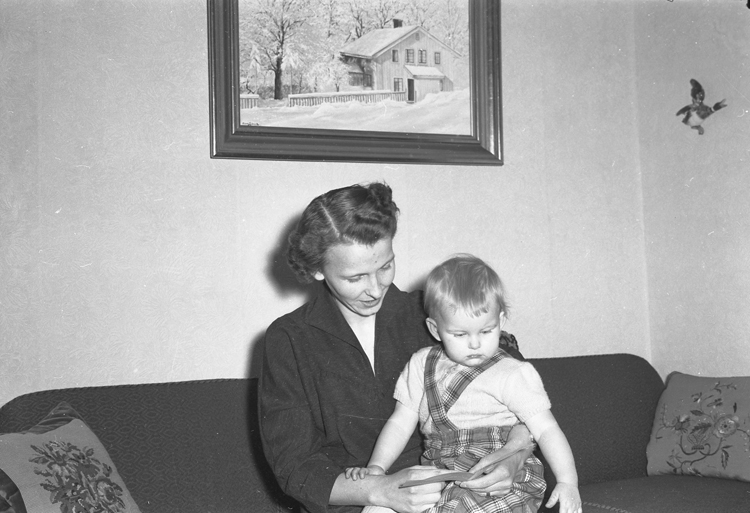 Text till bilden: "Överlämnande av insamling t. Fru Strandberg. 1954.11"