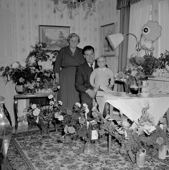 Text till bilden: "Fru Larsson, V. Kronbergsgatan 11. 50 år. 1956"