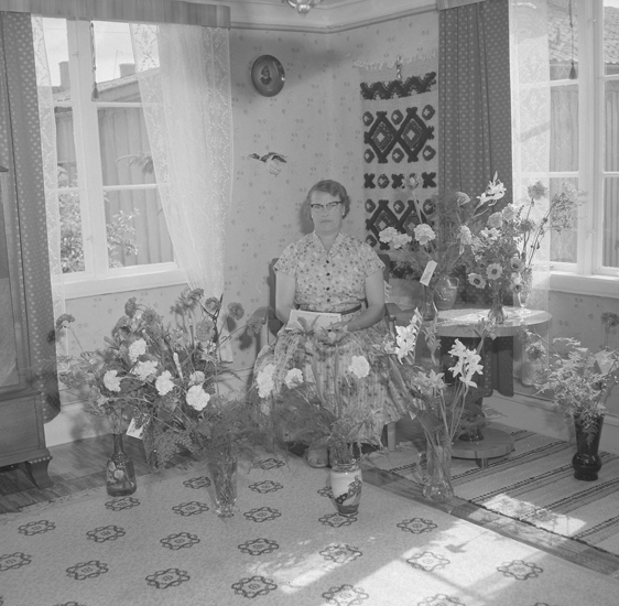 Text till bilden: "Fru Hansson, Bansviksgatan 45. 50 År. 1957.06.25"