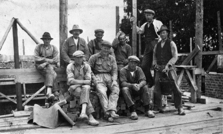 Hans Karsson, murarmästare D Walenius, Karl Nilsson, Hilding Johansson och
