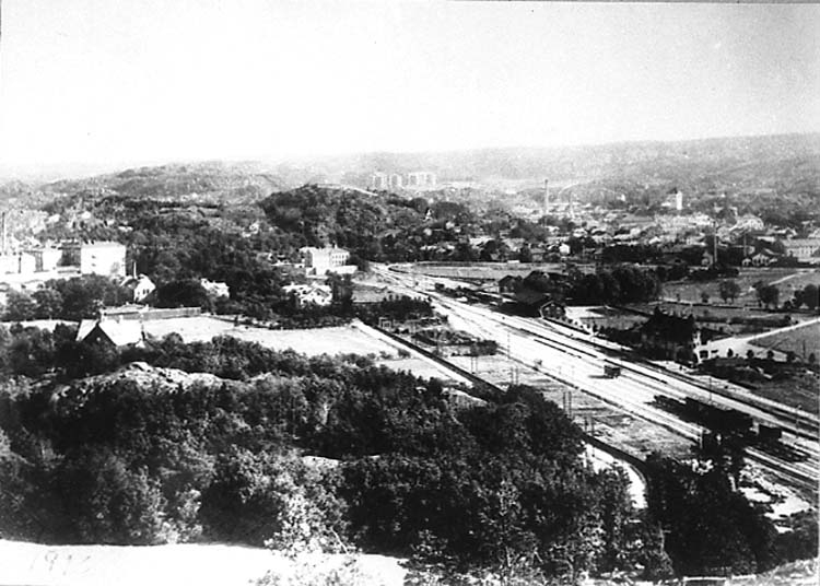 Medföljande text: "Utsikt från Brattåsberget österut över Uddevalla. Foto 1913. Uddevalla postkontorhistorik sedan början av 1800-talet".