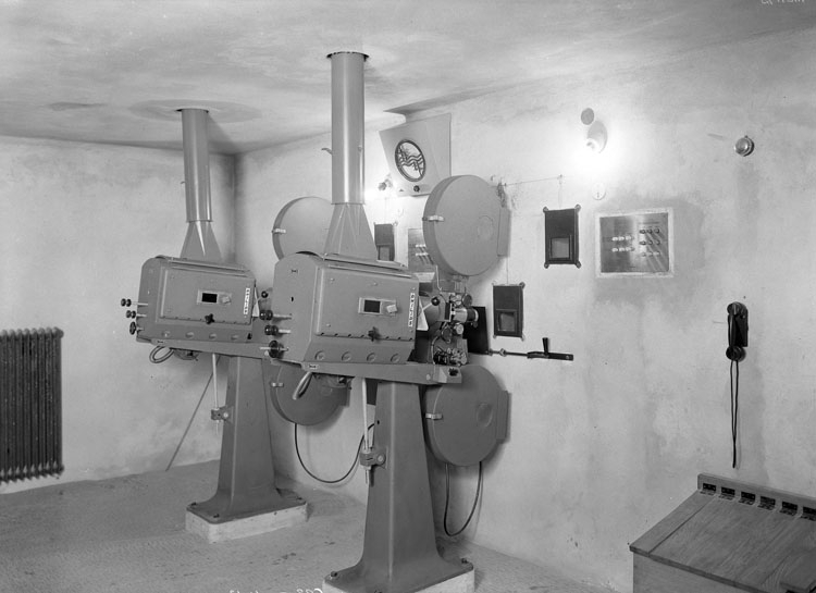 Uppgift enligt fotografen: "Uddevalla. Maskinrummet. Biografen "Saga".