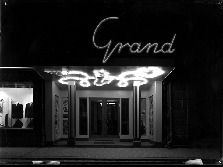 Uppgift enligt fotografen: "Uddevalla. Entrén Biografen "Grand" Drottninggatan."