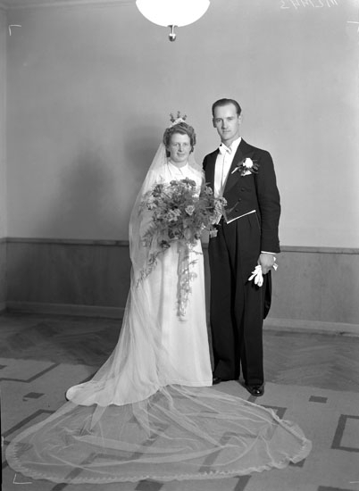 Uppgift enligt fotografen: "Uddevalla. Brudpar. Lennart Bråttemark. Jungskola."