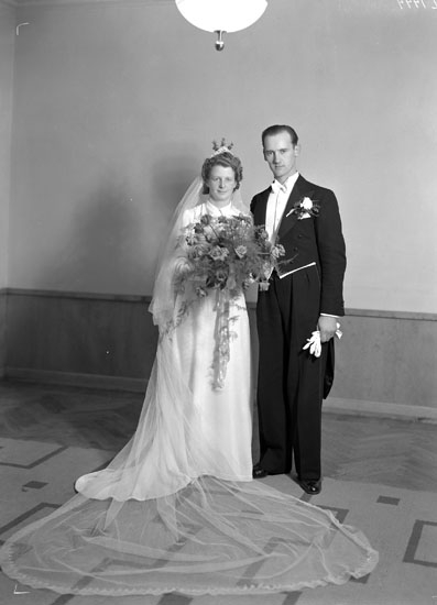 Uppgift enligt fotografen: "Uddevalla. Brudpar. Lennart Bråttemark. Jungskola."