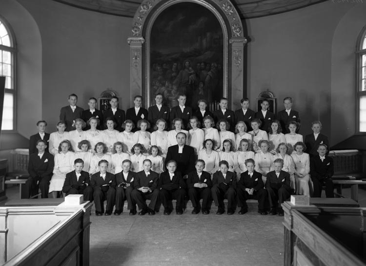 Uppgift enligt fotografen: "Uddevalla. Konfirmander. Pastor Långström."