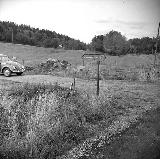 Foss socken. Lökeberg. Vägvisningsskylt till hällristning.