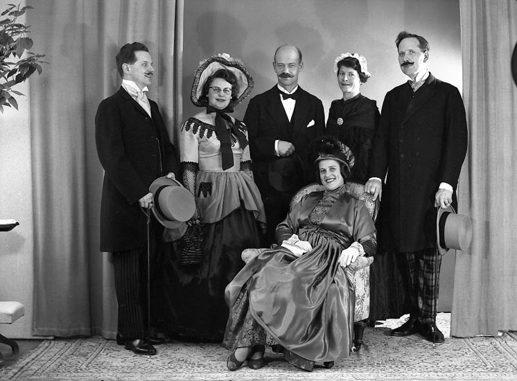 Enligt fotografens notering: "Ingeniörerna Jacobsson, Hansson, Backman med fruar Stenungsund".