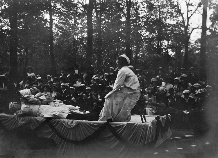 Enligt noteringar: "Karneval i Uppsala 1910, 'Alma mater'."