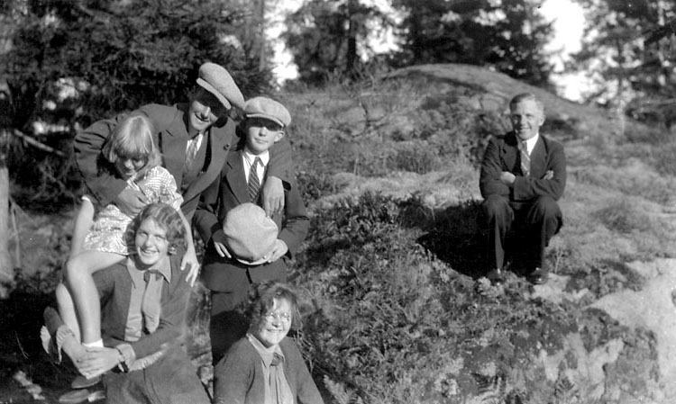 Enligt senare noteringar: "Här finns Gunnar Bjelkert tillsammans med syskonen på Eds gård: Judith, Valborg, Arne och Viborg Johansson".