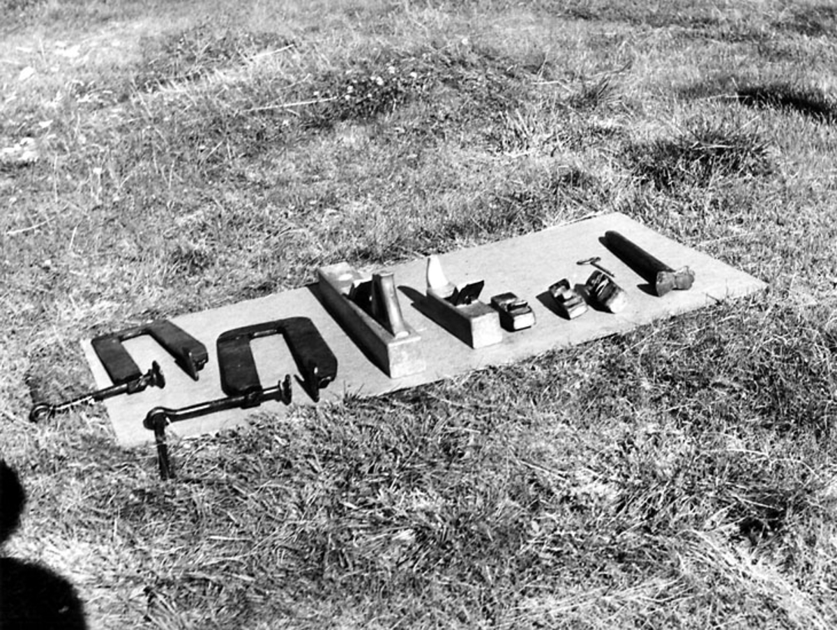 Båtbyggarverktyg hos båtbyggare Anton Mattsson i Saittarova, Tärendö socken