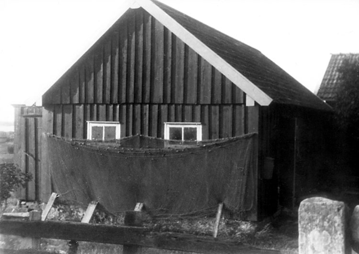 Skrivet på baksidan: "Halland, Viske hd, Värlö sn, Båtfjorden. Skäddegarn på tork."