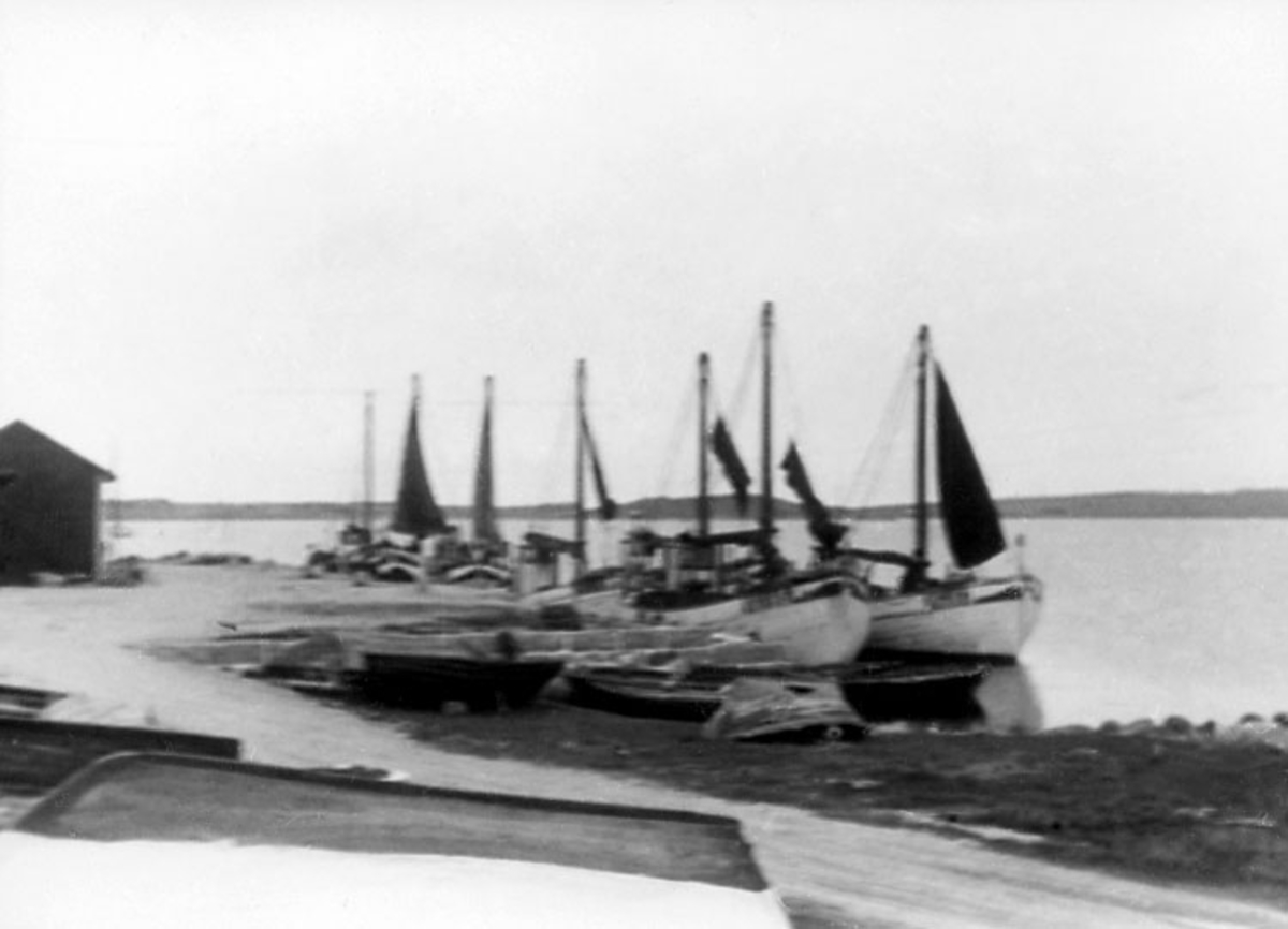 Skrivet på baksidan: Halland, Viske hd, Värö sn., Båtfjorden. Hästgarnsbåtar.