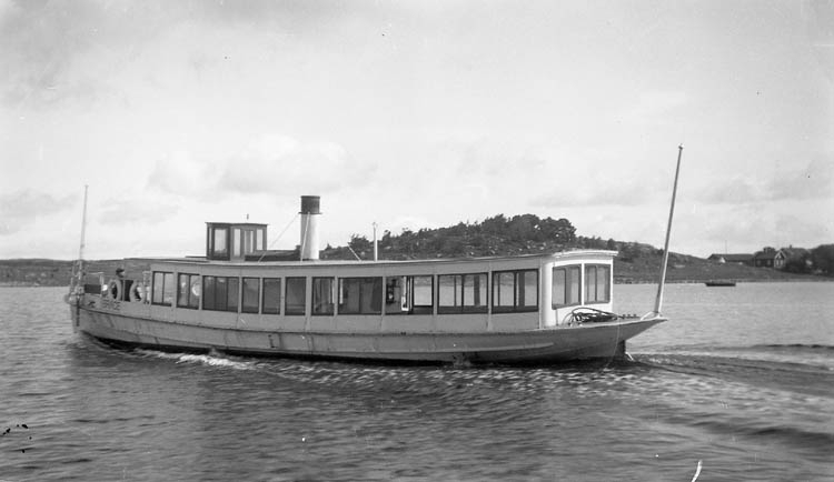 Enligt medföljande text: "Norum, Stenungsund "Brage" passagerarbåt Stenungsund-Stillingsön".