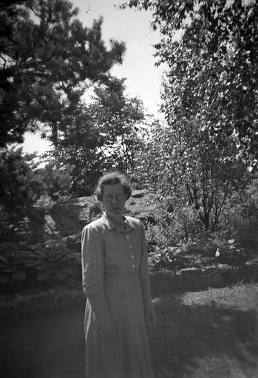 Enligt medföljande text: "Stenungsund, dam i trädgård".