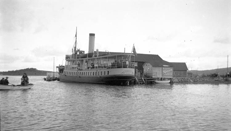 Enligt medföljande text: "Norum, Stenungsund "Borgila" vid ångbåtsbryggan".