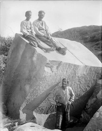 Enligt senare noteringar: "Efter denna lyckade uttagning av ett stenblock, i en liten paus: Alrik och Alfred Pettersson samt Frans Johansson i Lövvik".