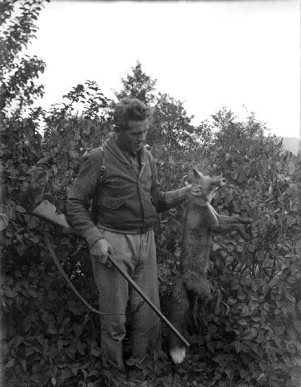 Enligt senare noteringar: "Jägare med en skjuten räv. John Johansson, Halvardslund".