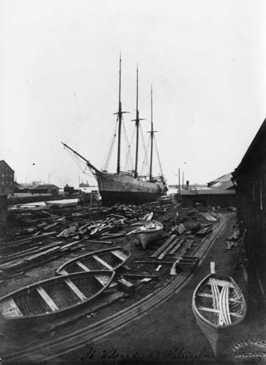 Skrivet på baksidan: Sk-skeppet VALPEN från Helsingfors på slipen den 4 Mars 1919.