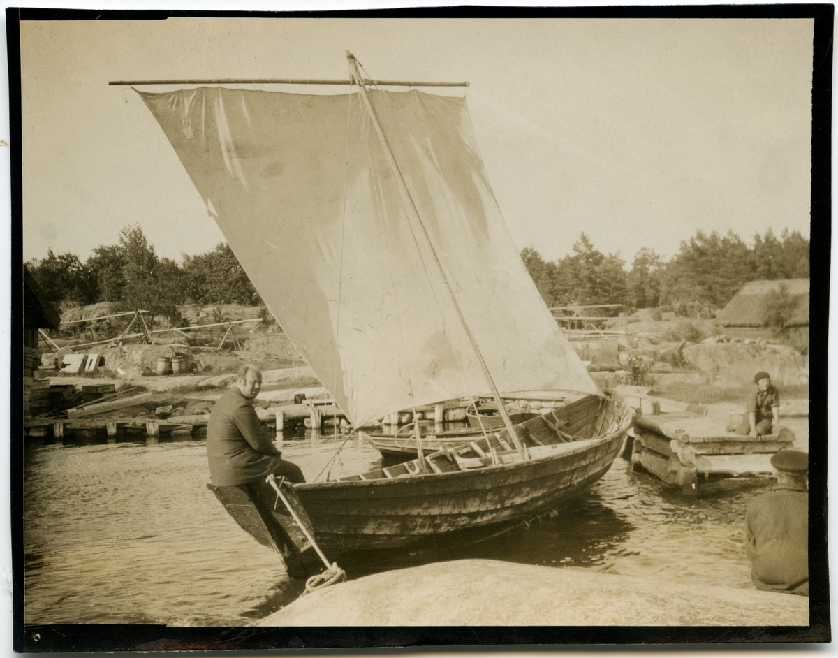 Skrivet på baksidan: Råsegelbåt på Krampö