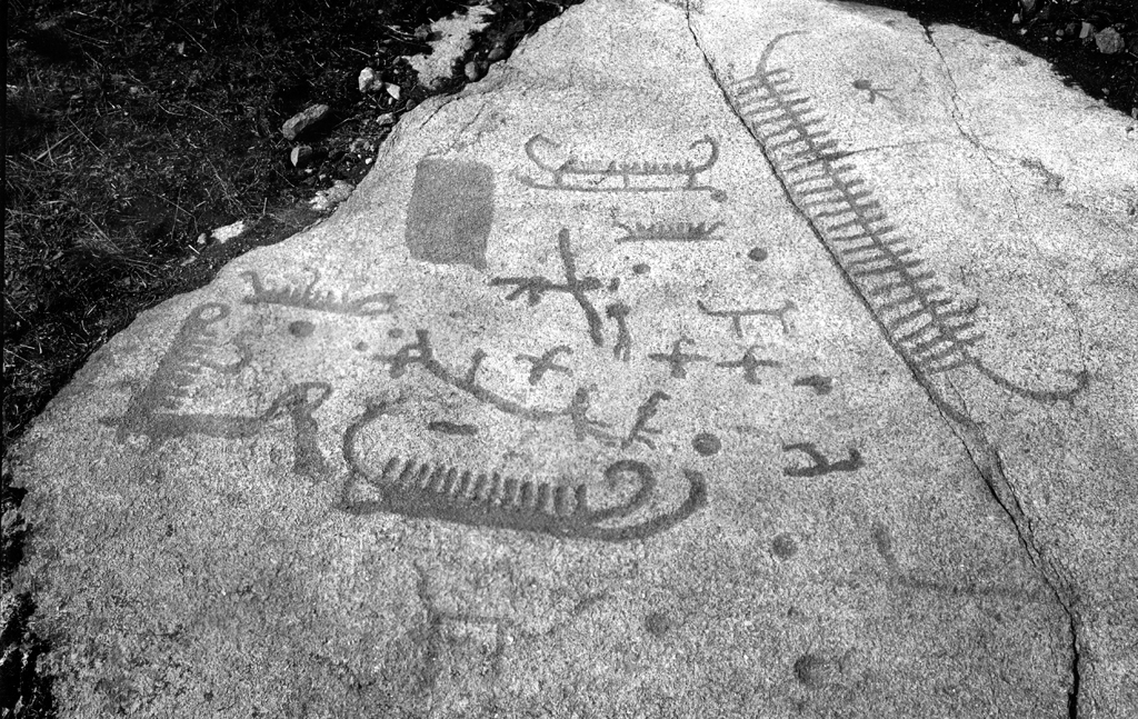 Enligt text: "1411 Mellangård S. Ödsmål, Kville s:n Hällristn. nr 16 fr S. den 9 sept -38 Åke Jönsson".