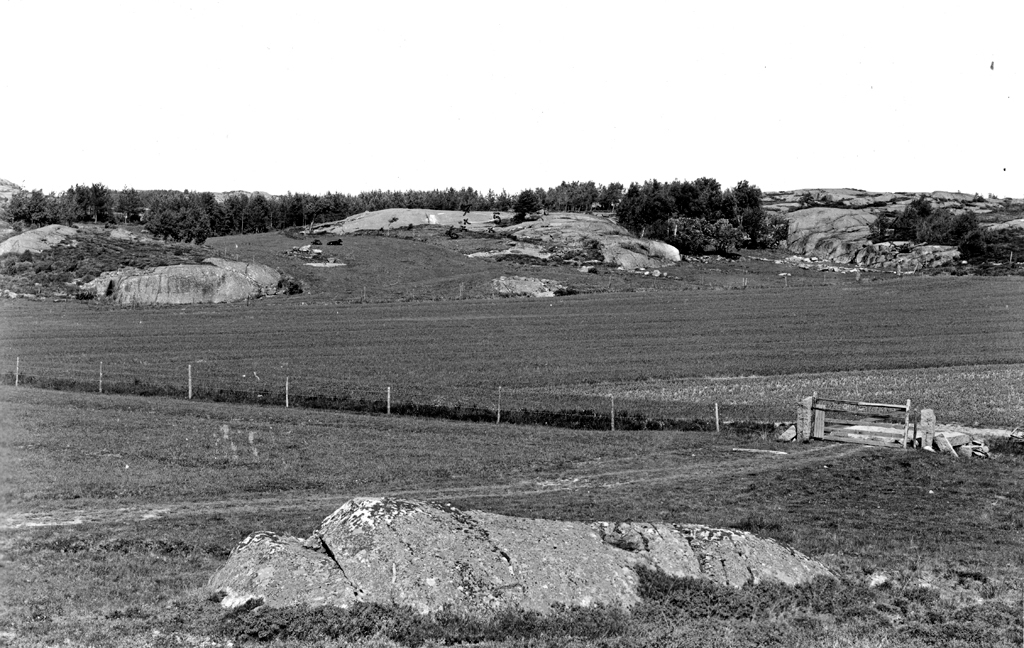 Enligt text: "1630. Klova, Nasseröd, Svenneby sn. Hällristningar n:r 4-7. Ristningarna angivna med x och n:r. I dungen mellan 4 och 5 har torpet Klova legat. Foto fr S. Den 22.6. -42. Å. Fredsjö".