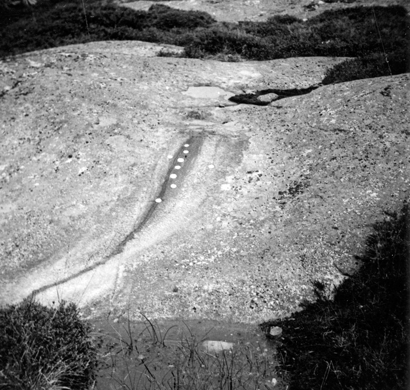 Enligt text: "Tuvene, Skärperöd, Svenneby sn. Hällristning n:r 1. Sett från SV. Foto den 17 sept 1941. Å. F. Plåt n:r 1302".