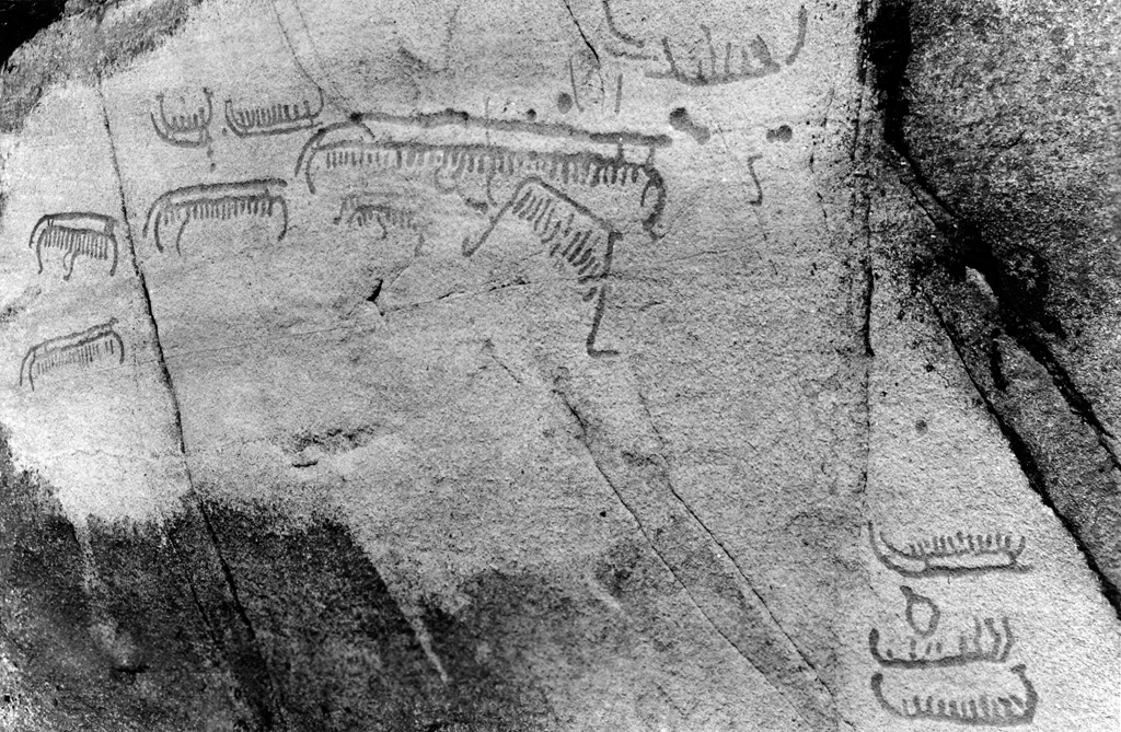Enligt text: "Askekärr, Övre Tun, Svenneby sn. Hällristning n:r 3. Sett från NV. Foto den 18 sept 1941. Å. F. Plåt n:r 1574".