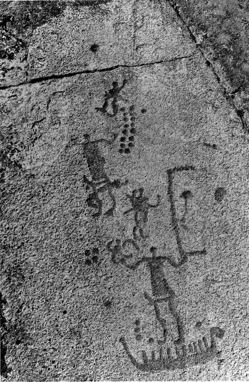 Enligt text: "Djupedal, Övre Tun, Svenneby sn. Hällristning n:r 4 (A). Sett från NO. Foto den 18 sept 1941. Å. F. Plåt n:r 1566".