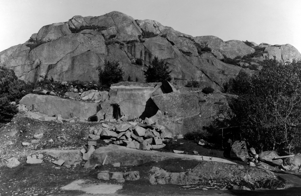Enligt text: "1646 Löska, Svenneby sn. Hällristning nr 1 och 2. Angivna med nr och x. Foto från SV. Den 25/9 1942. Åke Fredsjö".