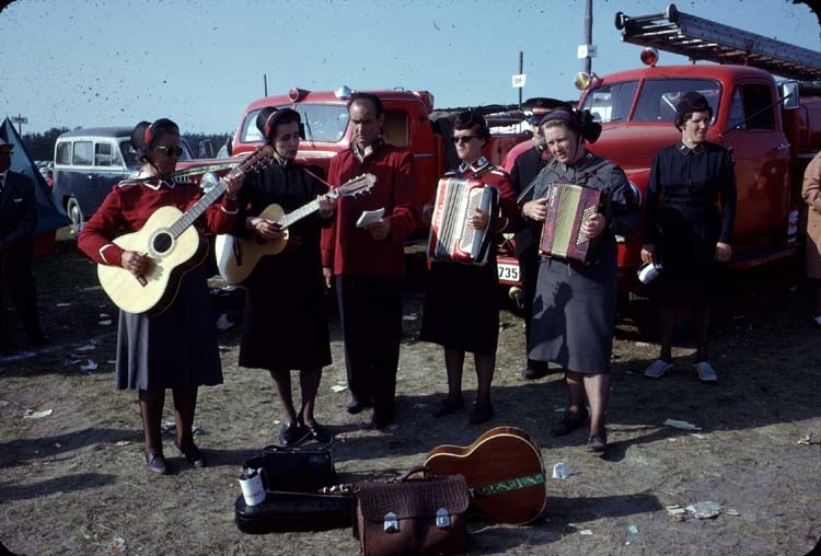 Frälsningsarmén underhåller på Kiviks marknad och brandkårens bilar visar upp