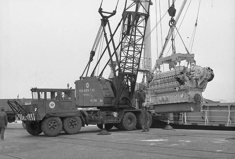 Enligt fotografens notering: "Skadad motor från Färöarna lyfts iland".