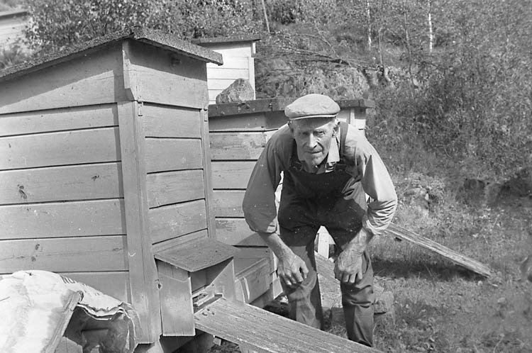 Enligt fotografens notering: "John Johansson, biodlare, Immestad, Brastad".