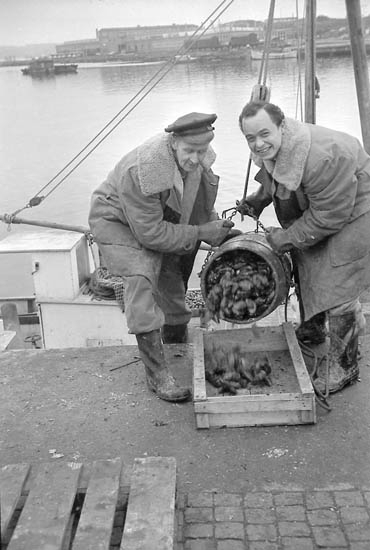 Enligt fotografens notering: "Blåmusslefiske, lossning i Lysekil 1968".
