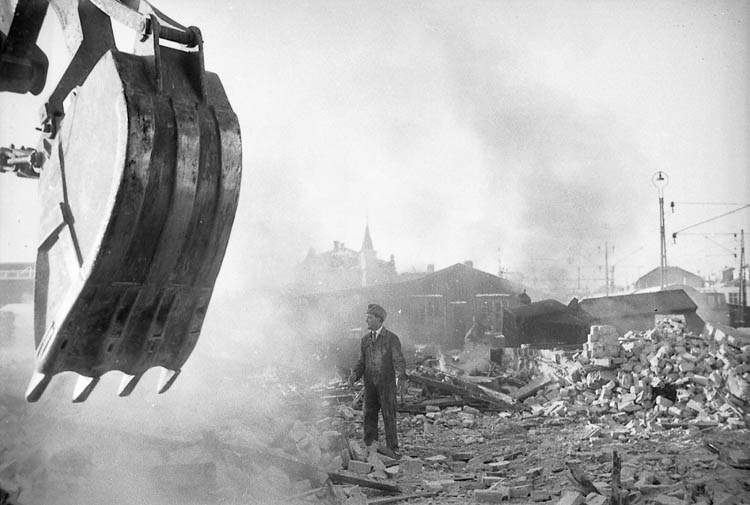 Enligt fotografens notering: "SJ lokstallar eldas upp i Lysekil".