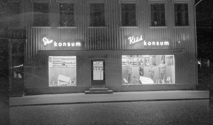 Text till bilden: "Konsum. Sko och Kläd-Konsum. 1950.06.21"