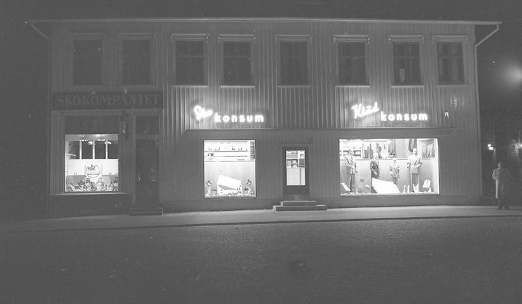 Text till bilden: "Konsum. Sko och Kläd-Konsum. 1950.06.21"