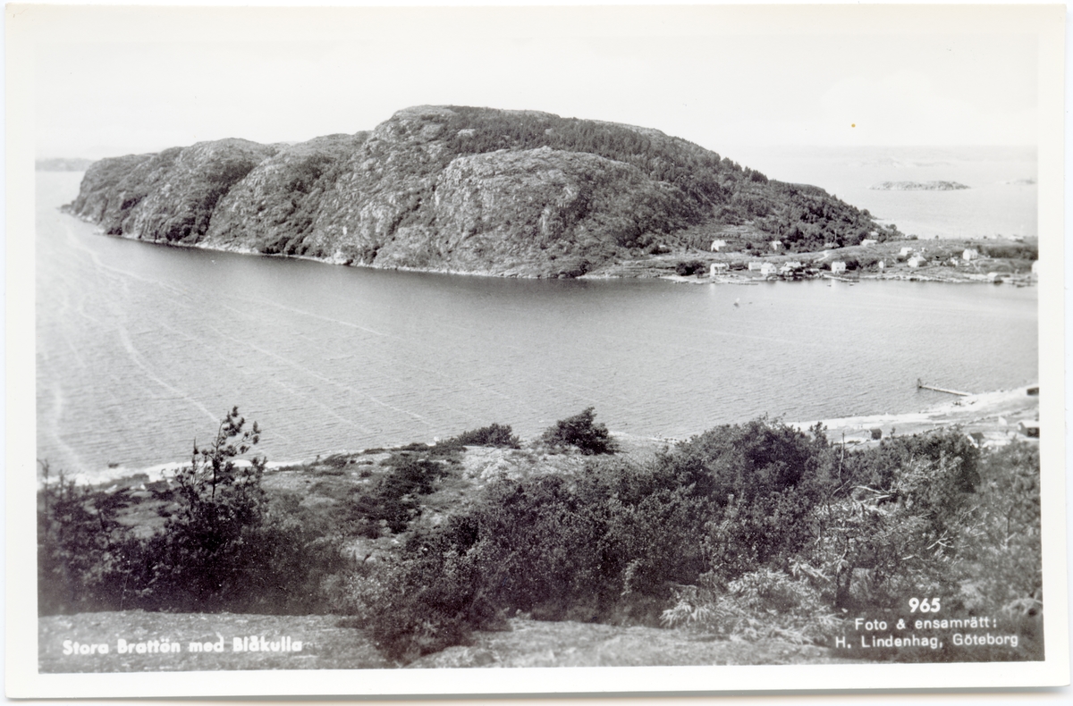 Tryckt text på kortet: "Stora Brattön med Blåkulla."