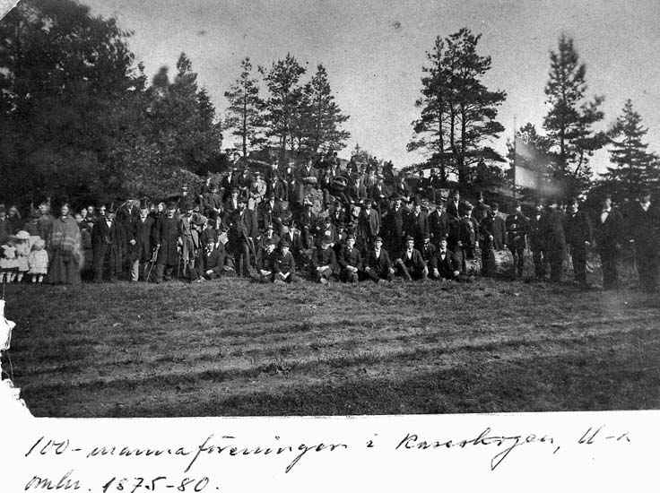 Text på kortet: "100-manna föreningen i Kaseskogen, U-a omkr. 1875-80.".