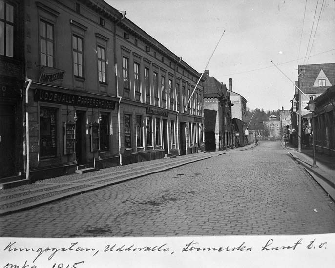 Text på kortet: "Kungsgatan, Uddevalla, Lönnerska huset t.v. omkr 1915".