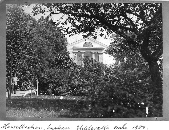 Text på kortet: "Hasselbacken, kyrkan Uddevalla omkr. 1900".