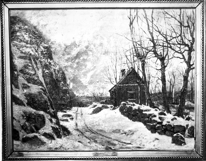 Vid Östra kyrkogården och vägen till Tureborg, Uddevalla. Foto av målning av Lotten Rönquist (1864 - 1912).