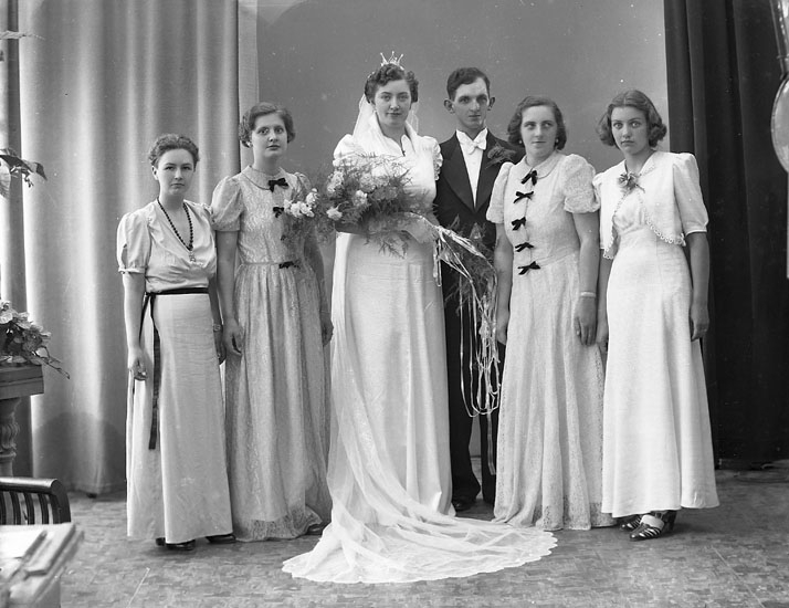 Enligt fotografens journal nr 6 1930-1943: "Olsson, Brudparet (Charkuteriet) Ödsmål".