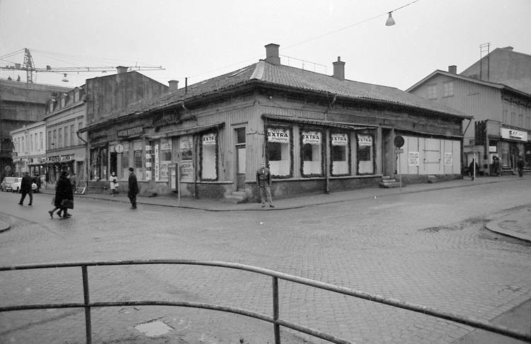Text till bilden: "Prinsplatsen" Korsningen mellan Kungsgatan-Drottningsgatan. Rivet 1965-66". Album 2 bild 2.