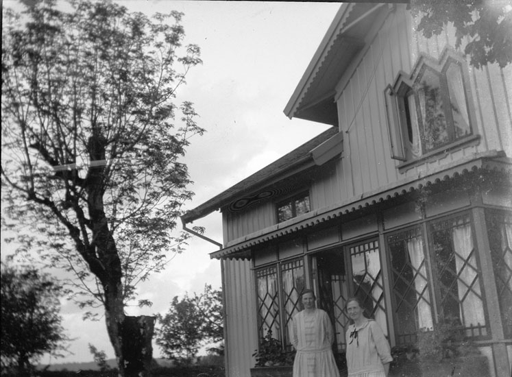 Enl. text i blå bok: "Villa. Två damer framför villan."