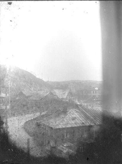Enl. text i blå bok: "Vy. Bebyggelse."