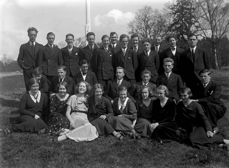 Text till bilden:"Gruppbild. Handelsavdelningen 1933-34".