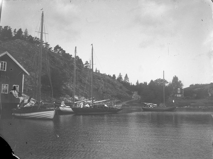 Enl. text i blå bok: "Segelbåtar vid brygga."